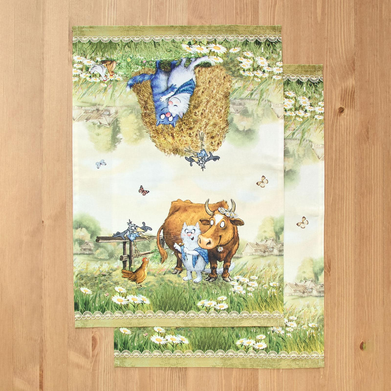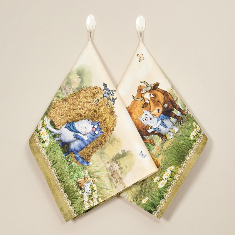 Набор полотенец 2 шт "СИНИЕ КОТЫ. ПРО ЛЮБОВЬ ",40х60 см, 100% хлопок,твил, беж LEFARD 850-720-62