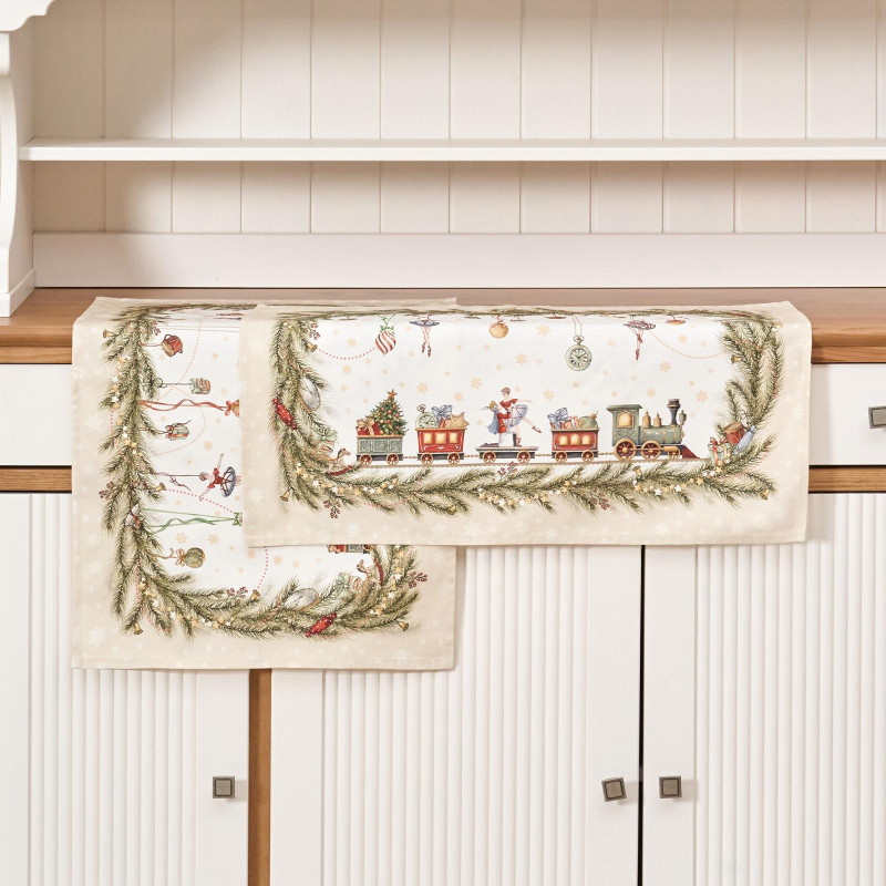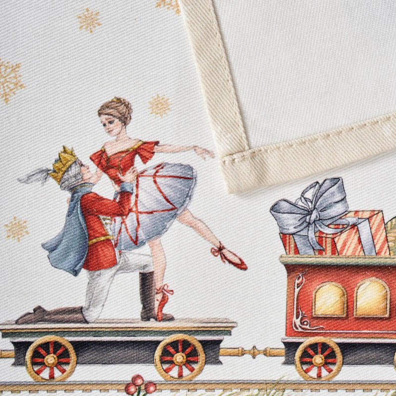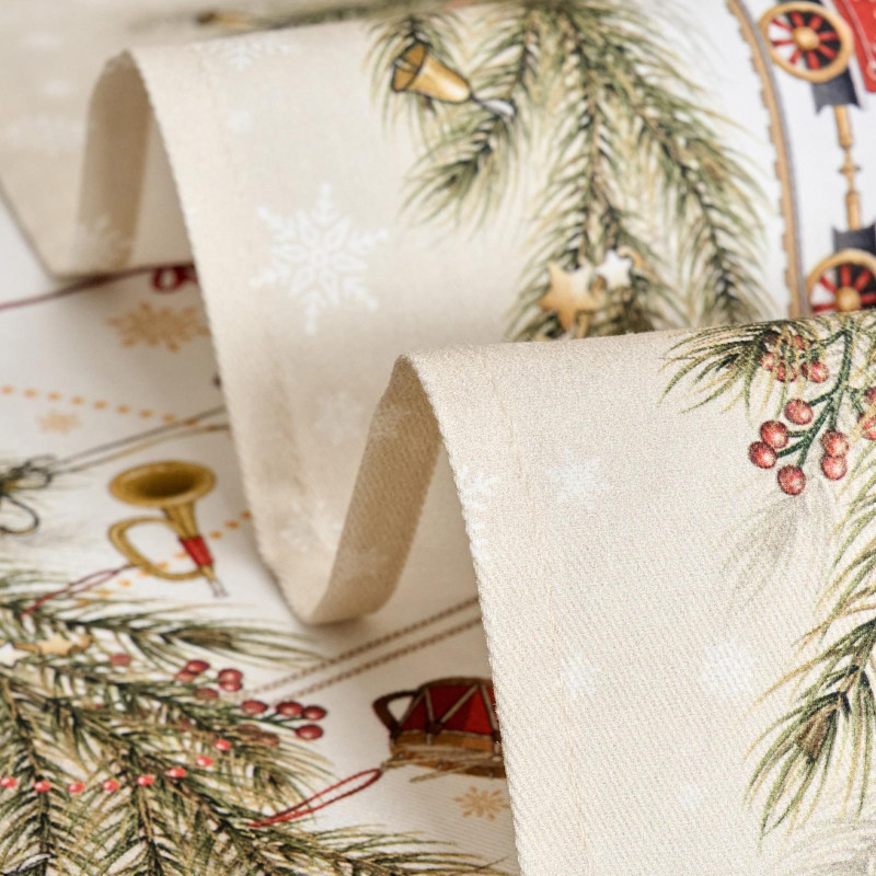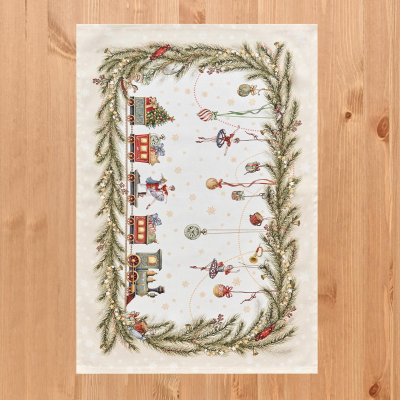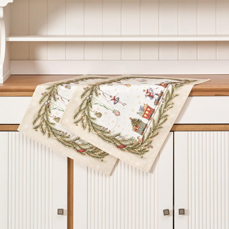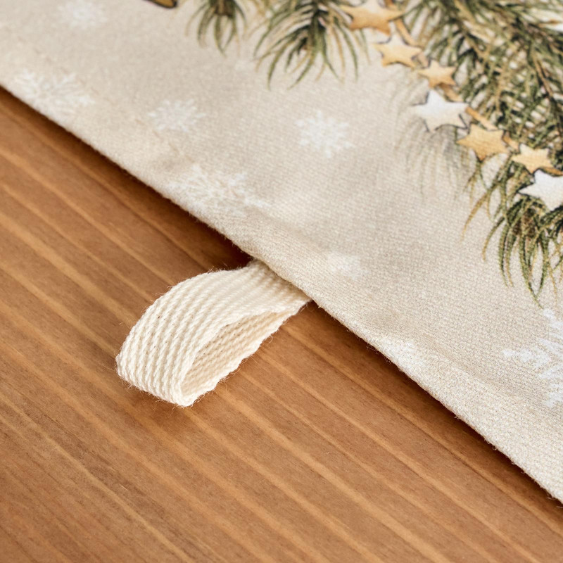 Рисунок нанесён методом современной цифровой печати, что обеспечивает чёткость линий и стойкость цвета даже после многократных стирок. Белый фон и насыщенные оттенки делают полотенца выразительным элементом новогоднего декора.
