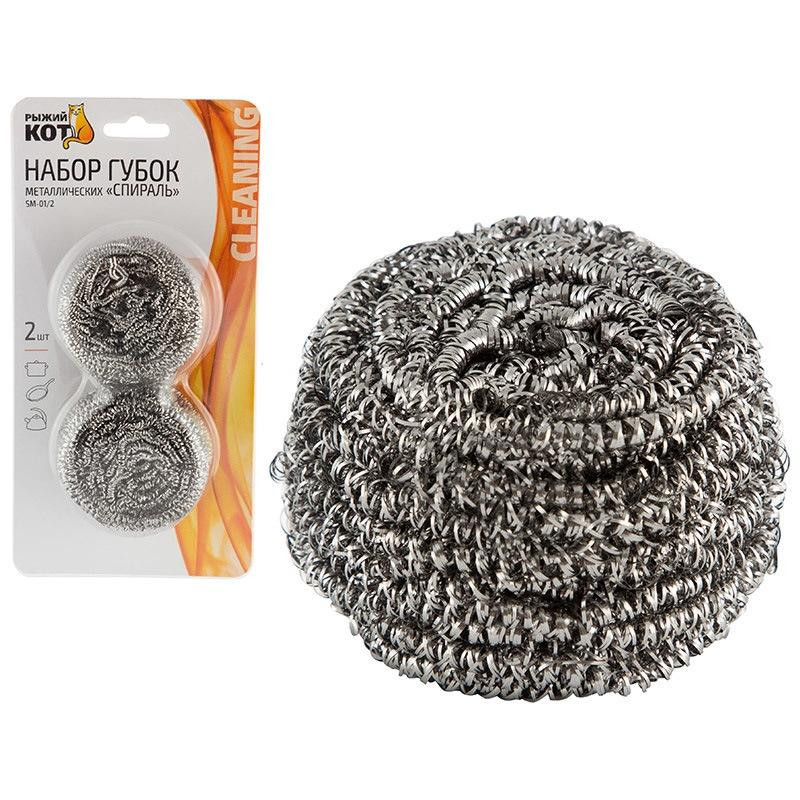 001739 Набор губок металлических SM-01/2, спираль, вес 30 гр., блистер 2 шт.