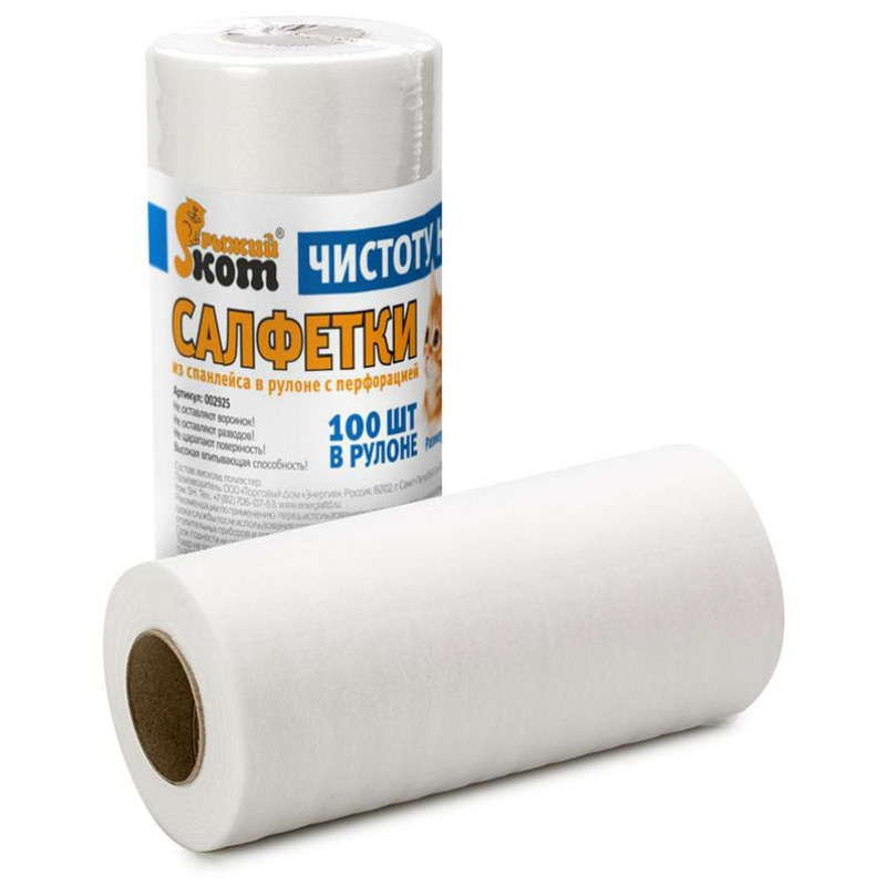 002925 Салфетки из спанлейса в рулоне с перфорацией 'Рыжий кот', 25х30см, 100шт