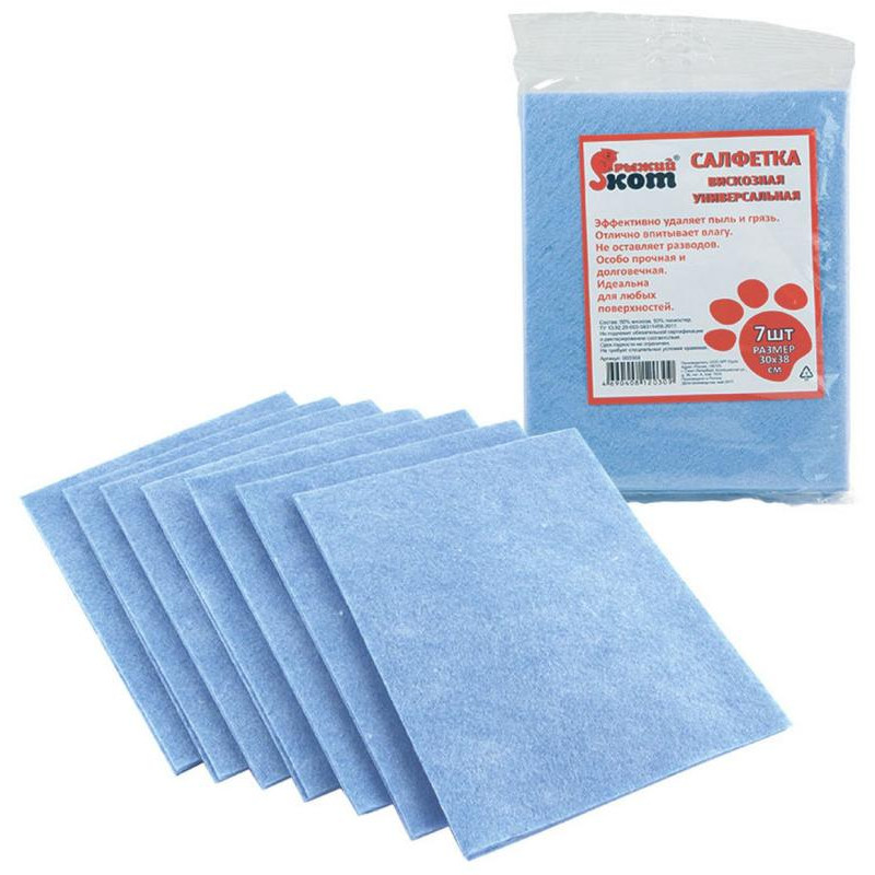 003568 Салфетка вискозная универсальная 'Рыжий кот' 7шт (30х38см)