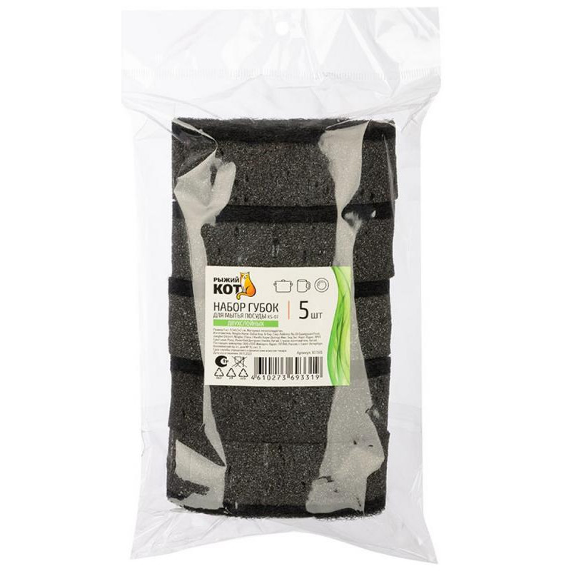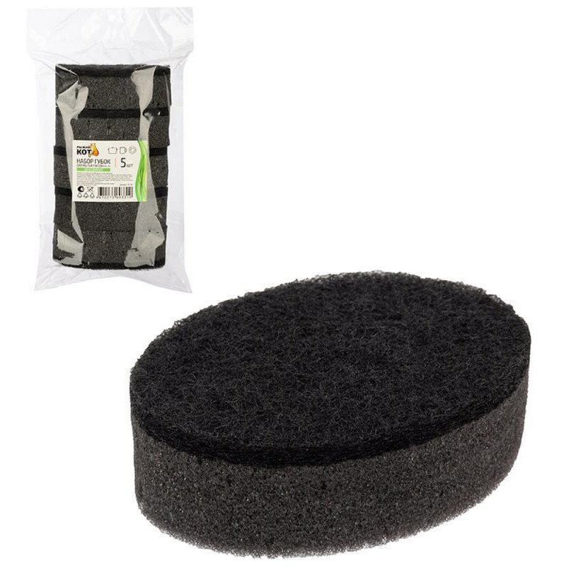 107565 Набор губок для мытья посуды двухслойных овальных KS-07 черный (5шт)
