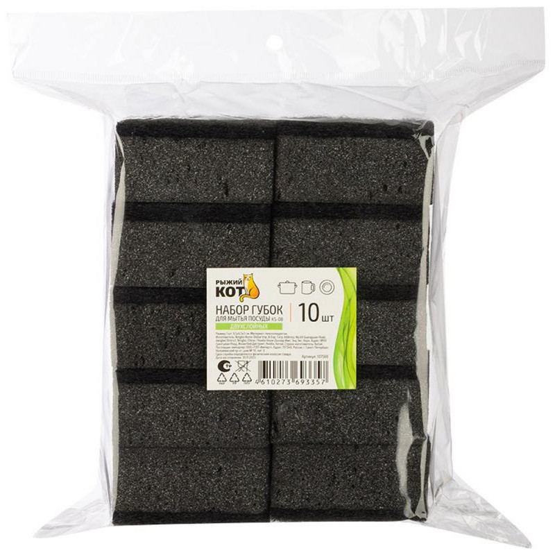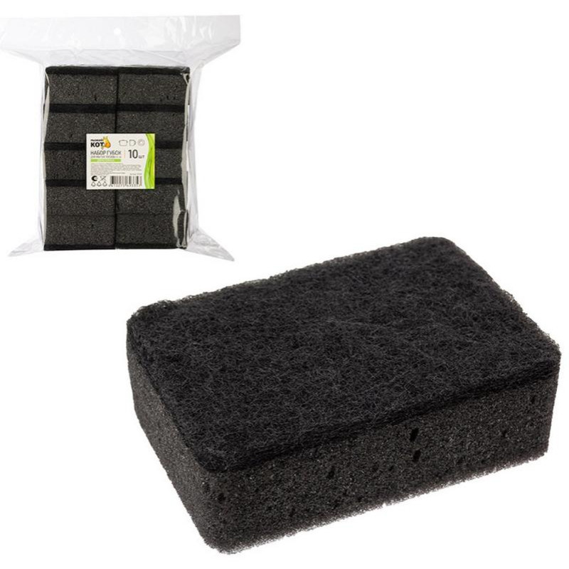 107569 Набор губок для мытья посуды двухслойных прямоугольных KS-08 черный (10шт)
