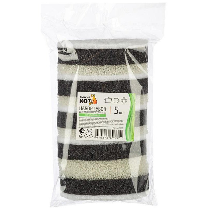 107571 Набор губок для мытья посуды трехслойных KS-09 белый/черный (5шт)