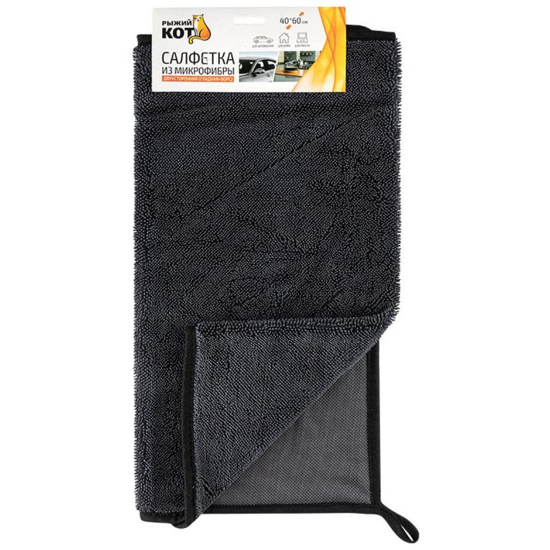109830 Салфетка из микрофибры двухсторонняя (гладкая+ворс) 'Рыжий кот' 40х60см