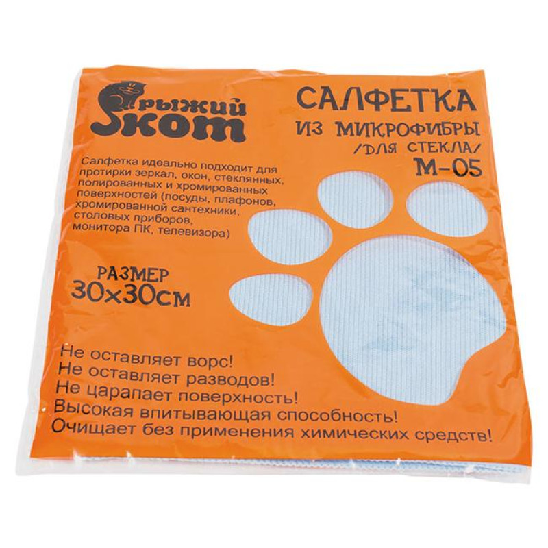 310211 Салфетка из микрофибры M-05 для стекла 'Рыжий кот', голубой, размер 30х30см