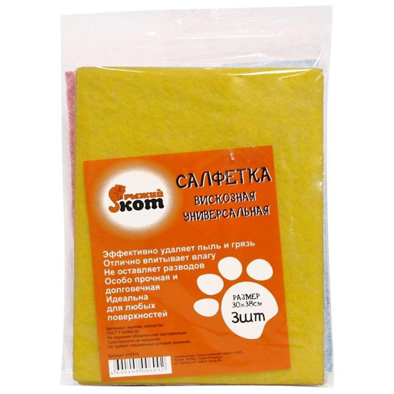 310215 Салфетка вискозная универсальная 'Рыжий кот' размер 30х38см (3шт)