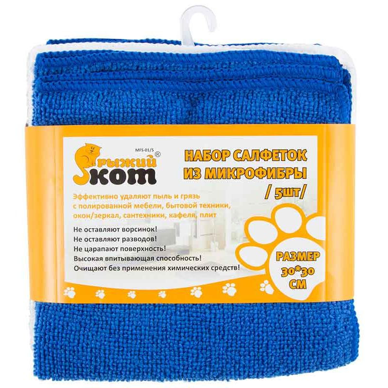 310238 Набор из 5-ти салфеток из микрофибры MFS-01/5 'Рыжий кот', размер 30х30см