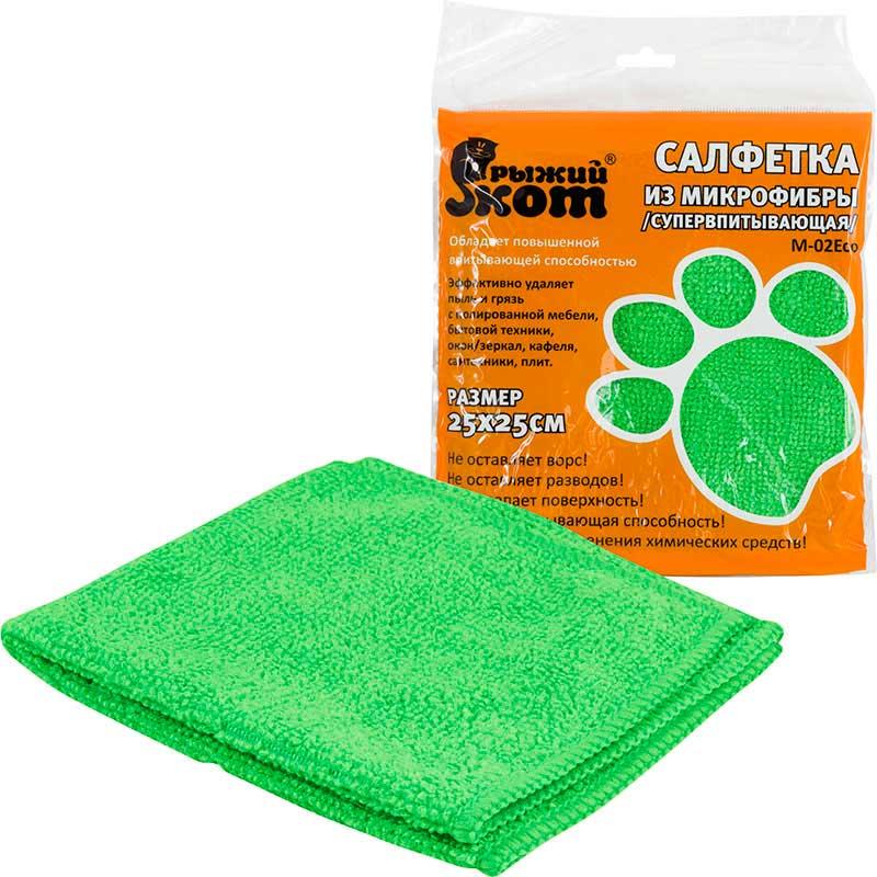 310292 Салфетка из микрофибры M-02Eco 'Рыжий кот', зеленый, размер 25х25см