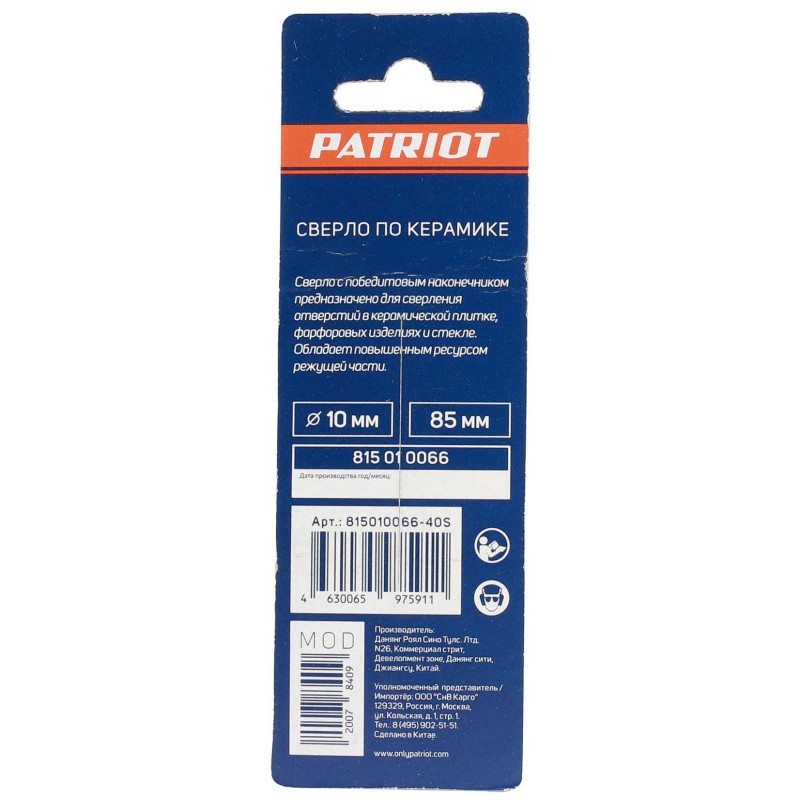 Сверло по керамике (10х85 мм) (815010066)