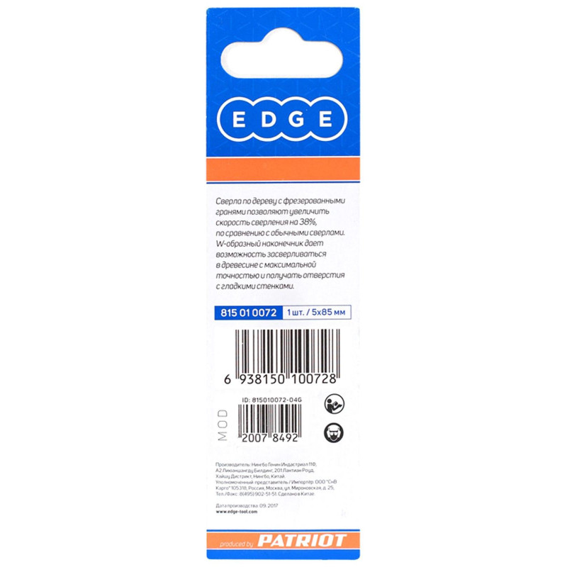 Сверло по дереву спиральное W-образная заточка 5 мм (815010072)