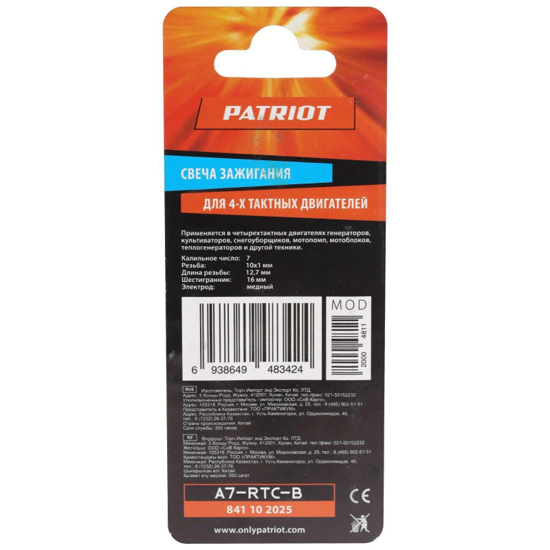 Свечи PATRIOT А7RTC-B для 4-х тактных двигателей (841102025)