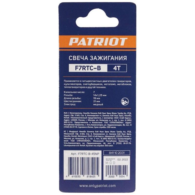 Свечи PATRIOT F7RTC-B для 4-х тактных двигателей (841102031)