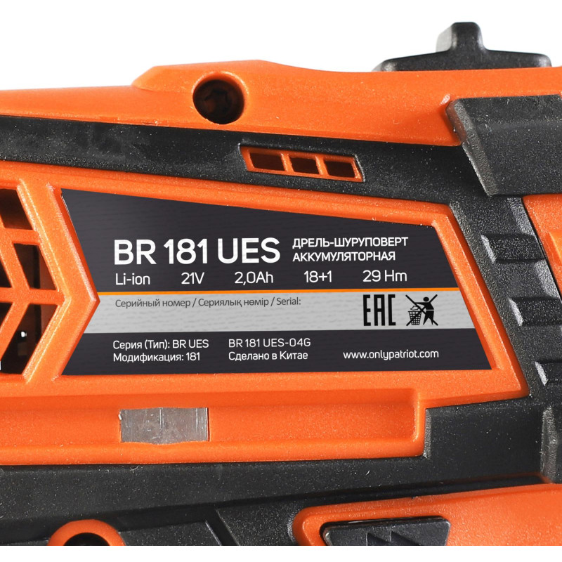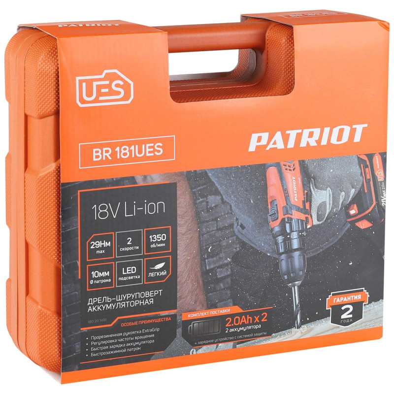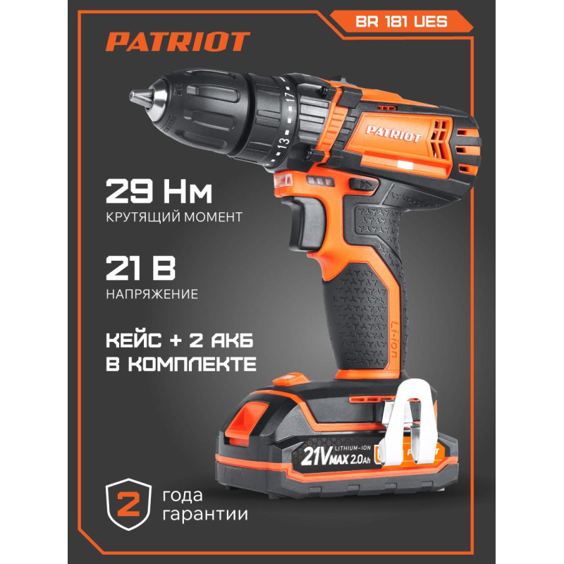 Дрель-шуруповерт аккумуляторная PATRIOT BR 181 UES (180201481)
