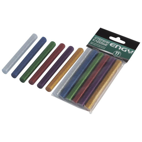007587 Стержни клеевые цветные, с блестками, 1, 1х10см, 6 шт
