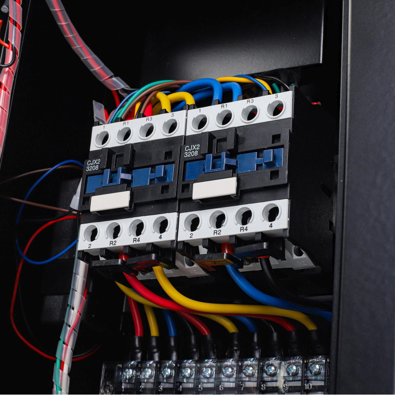 • переключает силовой контактор на питание потребителей от сети при появлении сетевого напряжения.