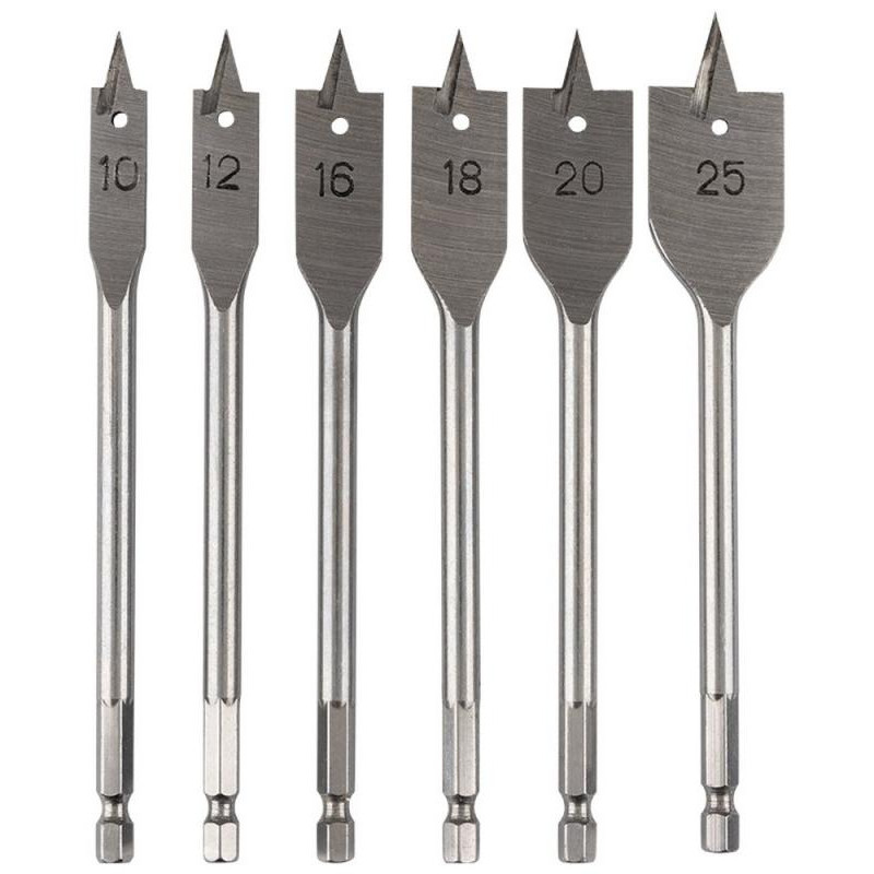 6шт, углеродистая сталь, размер: 10,12,16,18,20,25мм, тип хвостовика: шестигранный, тип: перовой