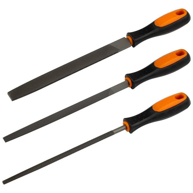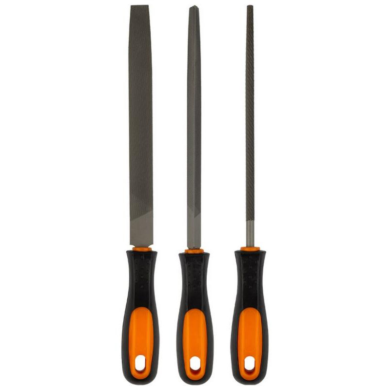 3шт, сталь/ПВХ, круглый плоский, трехгранный, 200мм рабочая часть, 300мм общая длина,