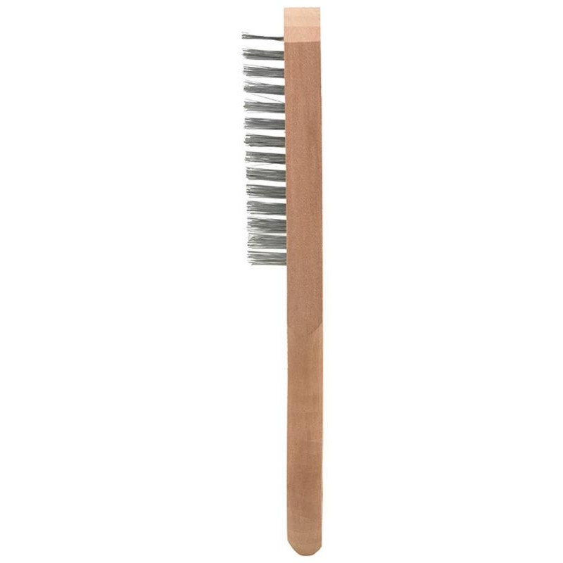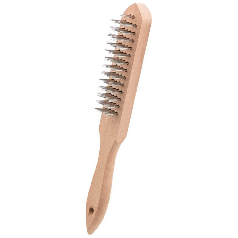 4 ряда. Длина 27см. Материал ручки: дерево. Материал щетины: сталь. Применяется для зачистки и затирки различных видов поверхностей. Упаковка: стикер