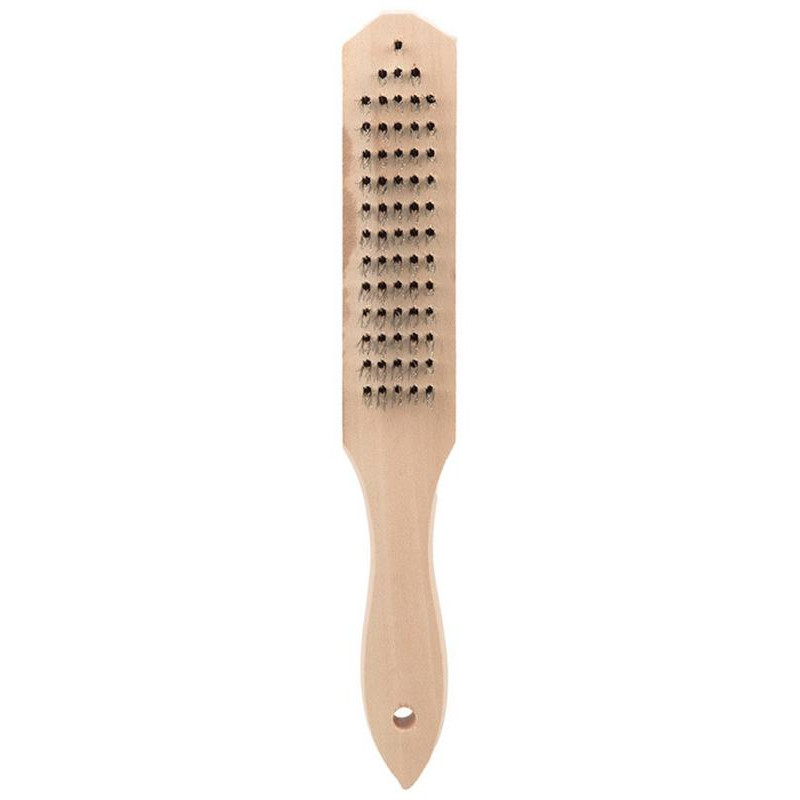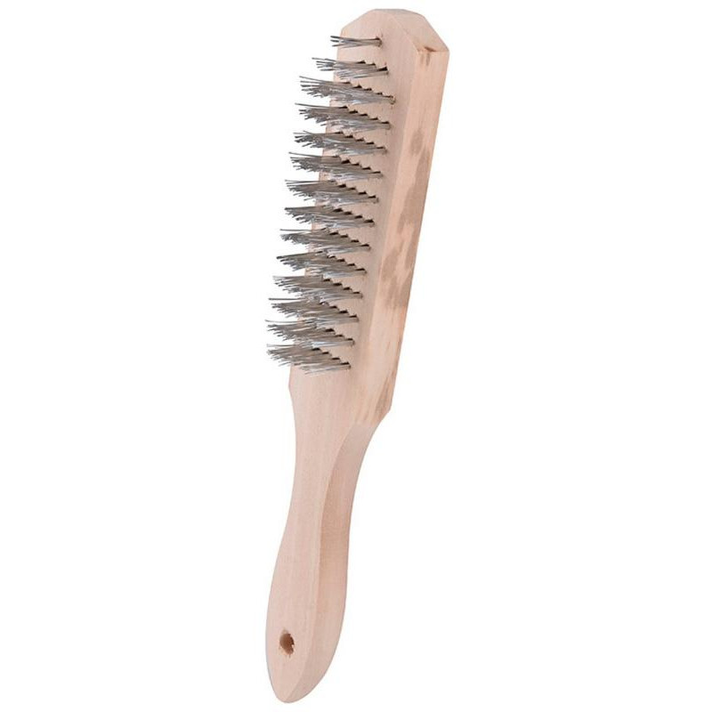 5 рядов. Длина: 27см. Материал ручки: дерево. Материал щетины: сталь. Применяется для зачистки и затирки различных видов поверхностей. Упаковка: стикер.