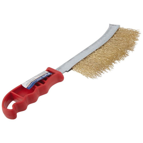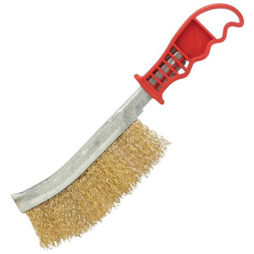 Размер: 23,5х5 см, материал ручки пластмасса, материал щетины латунь (переработанная стальная проволока, покрытая латунью), для зачистки и затирки различных видов поверхностей от старой краски, ржавчины и прочих загрязнений