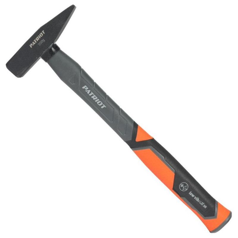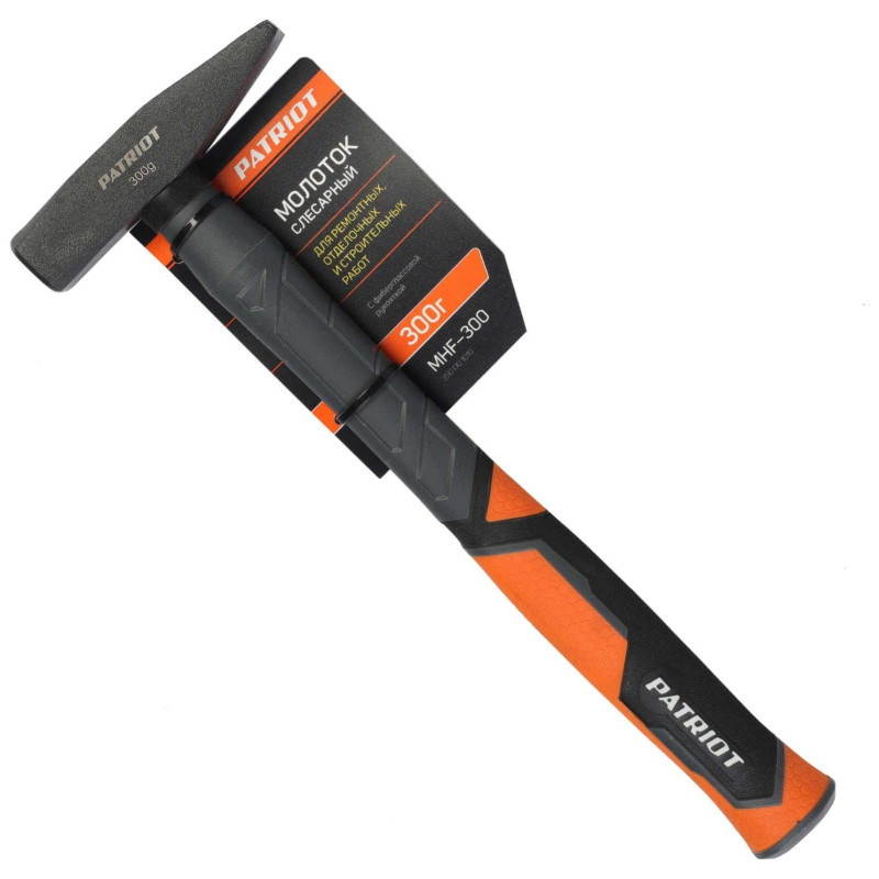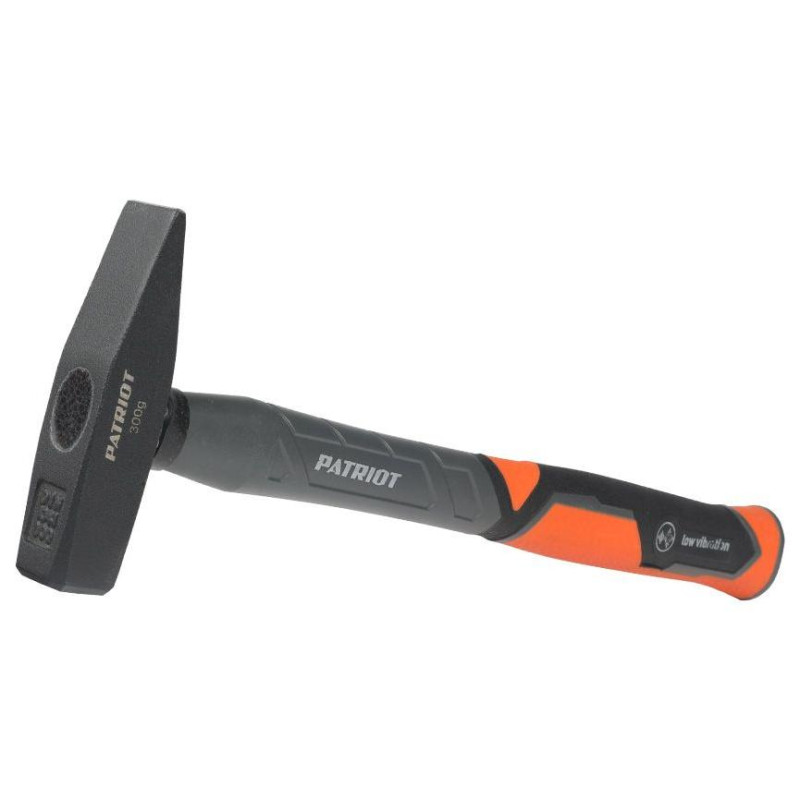 Молоток слесарный PATRIOT MHF-300 для ремонтных и строительных работ. Кованный боек сделан из закаленной стали. Фиберглассовая прорезиненная рукоять защищена от воздействия внешних агрессивных сред и выскальзывания при работе.