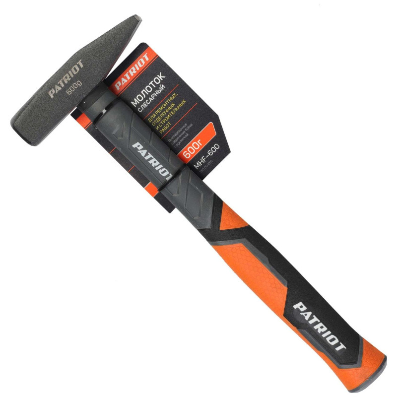 Молоток слесарный PATRIOT MHF-600 для ремонтных и строительных работ. Кованный боек сделан из высокопрочной закаленной стали. Фиберглассовая прорезиненная рукоять защищена от воздействия внешних агрессивных сред и выскальзывания при работе.