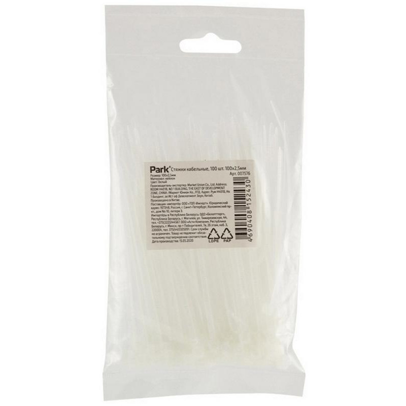007576 Стяжки кабельные Park 100х2.5мм, белый