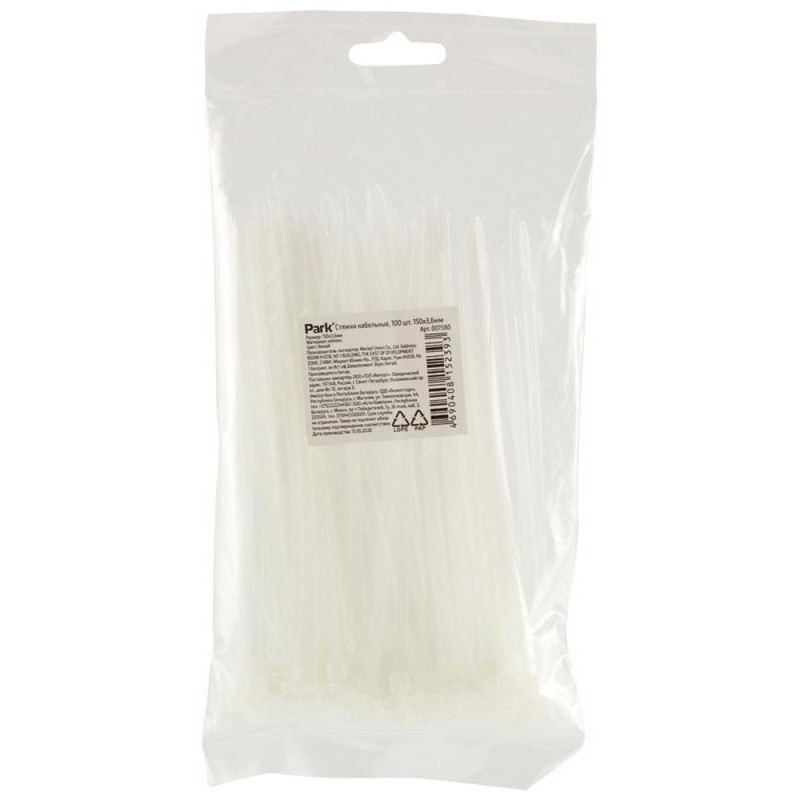 007580 Стяжки кабельные Park 150х3.6мм, белый