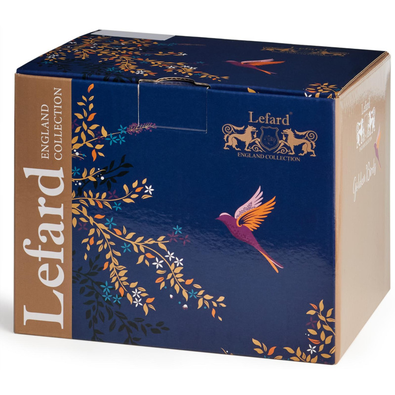 ТМ LEFARD роскошная коллекция «Golden Birds» яркой сказочной посуды из качественного фарфора. Перенесите себя в новый яркий мир, созданный для традиционного чаепития. Необычайно красивая, изящная, изысканная и утонченная посуда с изображением экзотических птиц и растений. Краски рисунка сохраняют яркость даже после длительного использования. Прекрасный подарок. Изделия упакованы в фирменную цветную коробку. Нельзя использовать в микроволновой печи. Разрешена только деликатная ручная мойка.