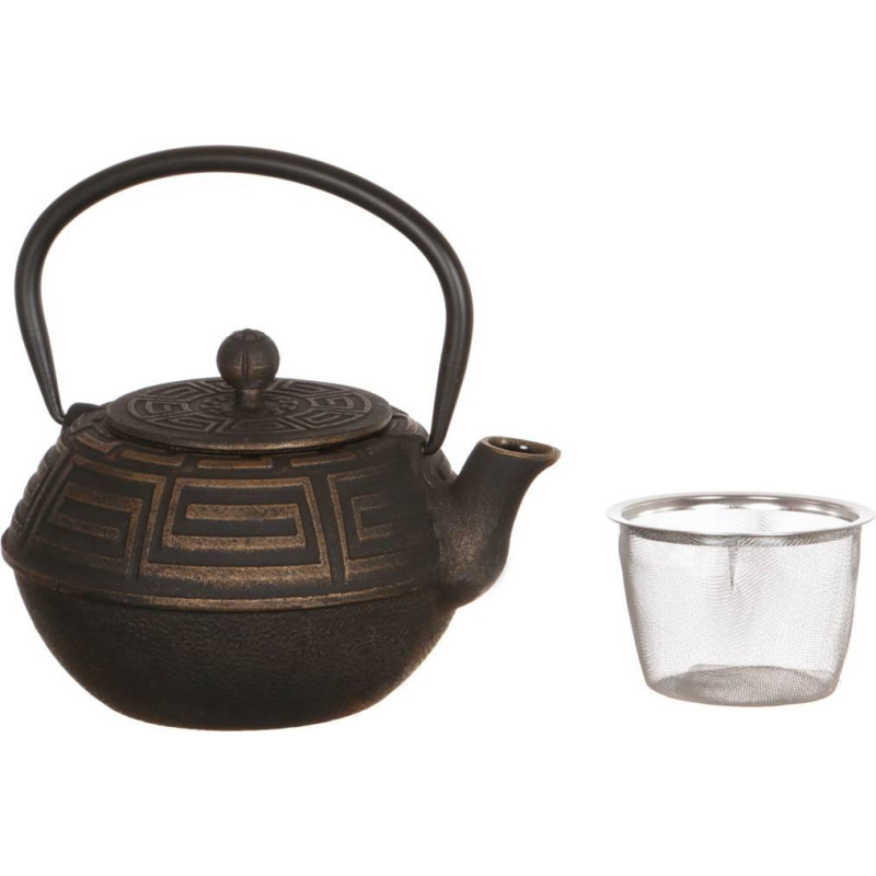 Заварочный чайник изготовлен из чугуна высокого качества. Размещенный внутри чайника сетчатый фильтр гарантирует прозрачность и чистоту напитка от чаинок. За счет равномерного распределения тепла внутри чайника, напиток получается максимально вкусным и насыщенным. Чугунный чайник дольше других удерживает тепло. Этот чайник украсит любую чайную церемонию, благодаря своему стильному дизайну. Станет прекрасным подарком. Мыть с применением нейтральных моющих средств, рекомендуется вытирать насухо после мытья во избежание появления ржавчины. Не хранить чай в чайнике долгое время, не использовать в ПММ. Не подходит для использования на любых типах плит.