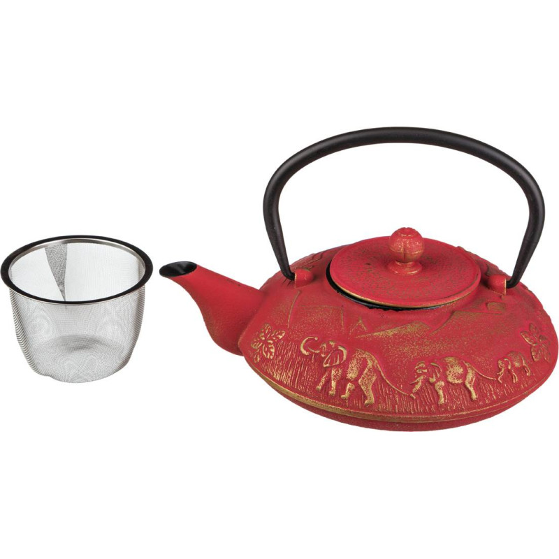 Заварочный чайник изготовлен из чугуна высокого качества. Размещенный внутри чайника сетчатый фильтр гарантирует прозрачность и чистоту напитка от чаинок. За счет равномерного распределения тепла внутри чайника, напиток получается максимально вкусным и насыщенным. Чугунный чайник дольше других удерживает тепло. Этот чайник украсит любую чайную церемонию, благодаря своему стильному дизайну. Станет прекрасным подарком. Мыть с применением нейтральных моющих средств, рекомендуется вытирать насухо после мытья во избежание появления ржавчины. Не хранить чай в чайнике долгое время, не использовать в ПММ. Не подходит для использования на любых типах плит.