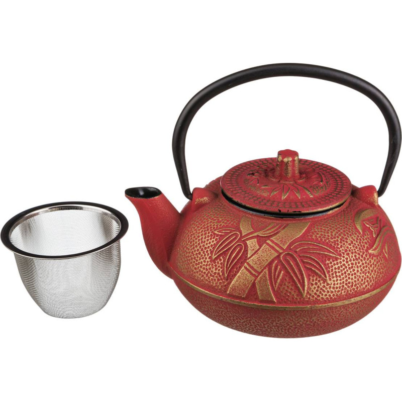 Заварочный чайник изготовлен из чугуна высокого качества. Размещенный внутри чайника сетчатый фильтр гарантирует прозрачность и чистоту напитка от чаинок. За счет равномерного распределения тепла внутри чайника, напиток получается максимально вкусным и насыщенным. Чугунный чайник дольше других удерживает тепло. Этот чайник украсит любую чайную церемонию, благодаря своему стильному дизайну. Станет прекрасным подарком. Мыть с применением нейтральных моющих средств, рекомендуется вытирать насухо после мытья во избежание появления ржавчины. Не хранить чай в чайнике долгое время, не использовать в ПММ. Не подходит для использования на любых типах плит.