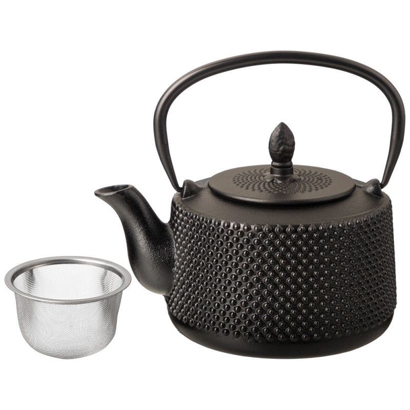 Устройте себе настоящую чайную церемонию с традиционным чугунным заварочным чайником. Внутренняя поверхность чайника покрыта эмалью, которая надежно защищает чайник от ржавчины и препятствует возникновению металлического привкуса у напитка, в связи с чем чайник идеально подойдет для заваривания Вашего любимого пуэра, улуна, черного, травяного или ароматизированного чая, раскрывая всю полноту вкуса напитка. В комплекте идет ситечко, которое надежно удерживает заварку. Не смотря на свои маленькие компактные размеры, этот чайник вмещает в себя 1000 мл, а его презентабельный внешний вид будет выигрышно смотреться на любом празднике.