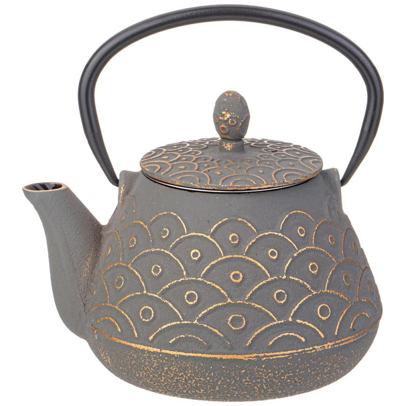 Устройте себе настоящую чайную церемонию с традиционным чугунным заварочным чайником. Внутренняя поверхность чайника покрыта эмалью, которая надежно защищает чайник от ржавчины и препятствует возникновению металлического привкуса у напитка, в связи с чем чайник идеально подойдет для заваривания Вашего любимого пуэра, улуна, черного, травяного или ароматизированного чая, раскрывая всю полноту вкуса напитка. В комплекте идет ситечко, которое надежно удерживает заварку. Не смотря на свои маленькие компактные размеры, этот чайник вмещает в себя 1000 мл, а его презентабельный внешний вид будет выигрышно смотреться на любом празднике.