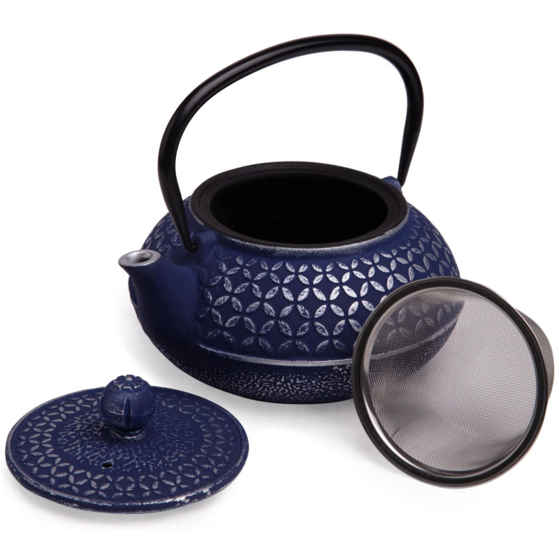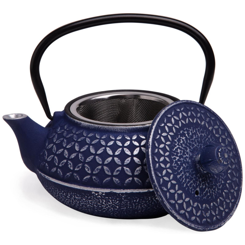 Устройте себе настоящую чайную церемонию с традиционным чугунным заварочным чайником. Внутренняя поверхность чайника покрыта эмалью, которая надежно защищает чайник от ржавчины и препятствует возникновению металлического привкуса у напитка, в связи с чем чайник идеально подойдет для заваривания Вашего любимого пуэра, улуна, черного, травяного или ароматизированного чая, раскрывая всю полноту вкуса напитка. В комплекте идет ситечко, которое надежно удерживает заварку. Не смотря на свои маленькие компактные размеры, этот чайник вмещает в себя 600 мл, а его презентабельный внешний вид будет выигрышно смотреться на любом празднике.
