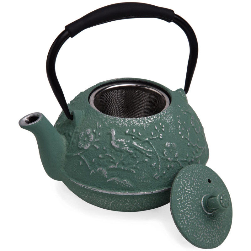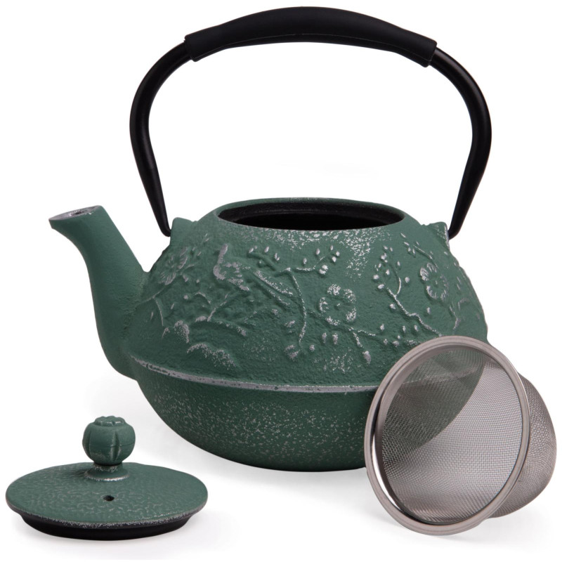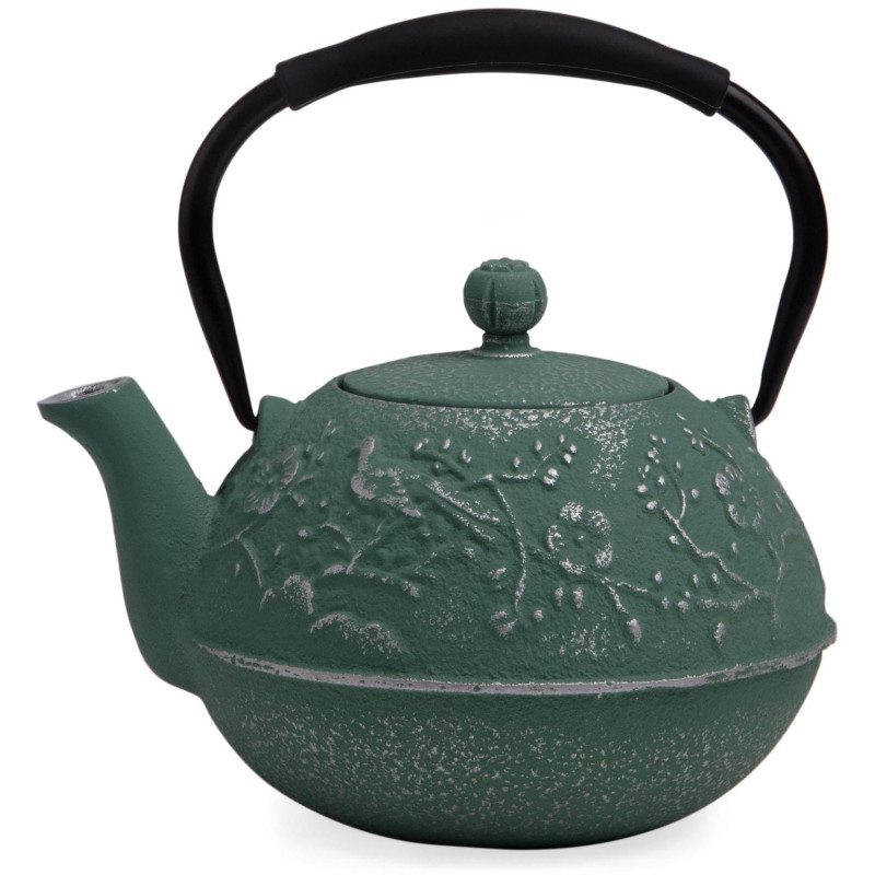 Устройте себе настоящую чайную церемонию с традиционным чугунным заварочным чайником. Внутренняя поверхность чайника покрыта эмалью, которая надежно защищает чайник от ржавчины и препятствует возникновению металлического привкуса у напитка, в связи с чем чайник идеально подойдет для заваривания Вашего любимого пуэра, улуна, черного, травяного или ароматизированного чая, раскрывая всю полноту вкуса напитка. В комплекте идет ситечко, которое надежно удерживает заварку. Не смотря на свои маленькие компактные размеры, этот чайник вмещает в себя 700 мл, а его презентабельный внешний вид будет выигрышно смотреться на любом празднике.