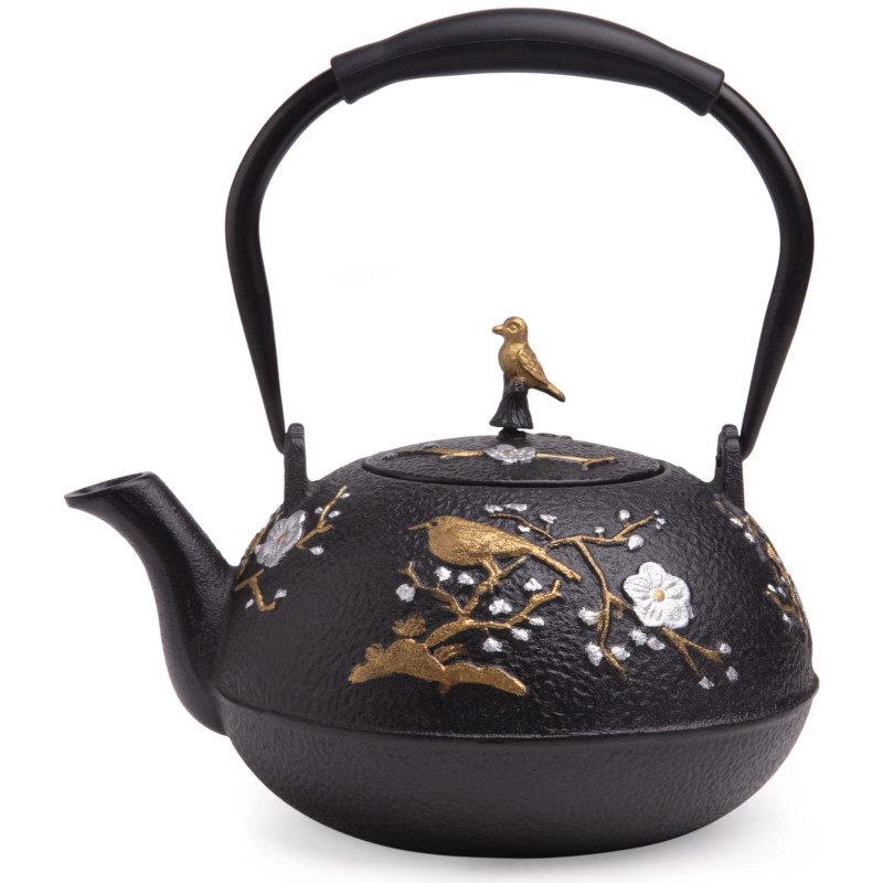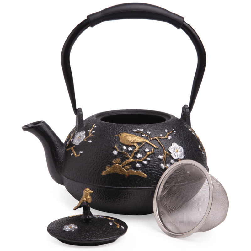 Устройте себе настоящую чайную церемонию с традиционным чугунным заварочным чайником. Внутренняя поверхность чайника покрыта эмалью, которая надежно защищает чайник от ржавчины и препятствует возникновению металлического привкуса у напитка, в связи с чем чайник идеально подойдет для заваривания Вашего любимого пуэра, улуна, черного, травяного или ароматизированного чая, раскрывая всю полноту вкуса напитка. В комплекте идет ситечко, которое надежно удерживает заварку. Не смотря на свои маленькие компактные размеры, этот чайник вмещает в себя 1200 мл, а его презентабельный внешний вид будет выигрышно смотреться на любом празднике.