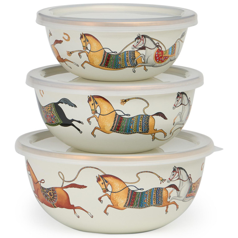 Набор мисок эмалирован. с пластик.крышками, серия PASSAGE, 6пр. 14/16/18см, 0, 6/0, 9/1, 3л LEFARD 950-655