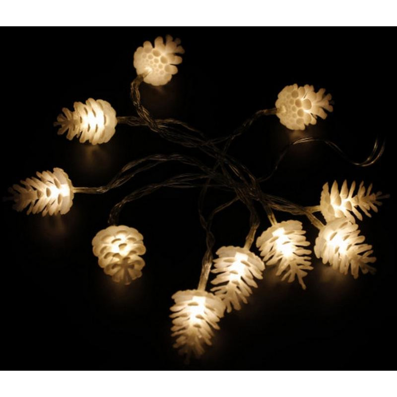 Теплый белый, 10 LED, 1.65м, 1 режим, рназмер шишки 4.5х3см, использование внутри помещений, питание от батареек ААх2шт (не в компл.)