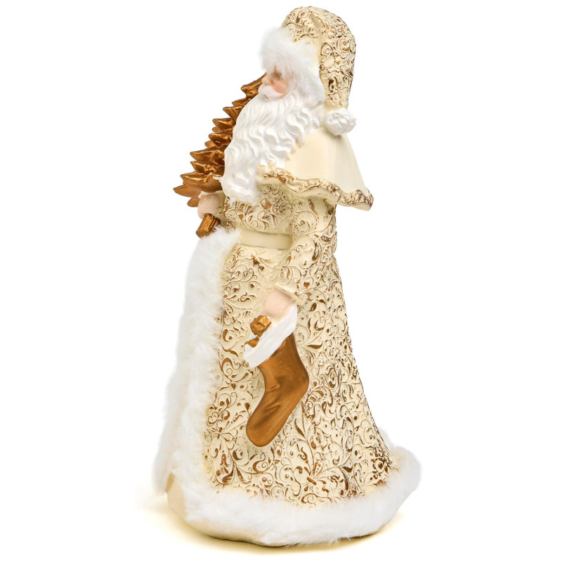 Пусть ваш дом наполнится теплом и волшебством — с этим величественным Дедом Морозом из прочного и благородного полистоуна! Он словно только что сошёл со страниц новогодней сказки: в роскошном кафтане с золотыми узорами и белым мехом, с пышной бородой и золотой ёлочкой в руках — он готов стать центром вашего новогоднего декора или любимым акцентом на камине, полке или рядом с ёлкой.