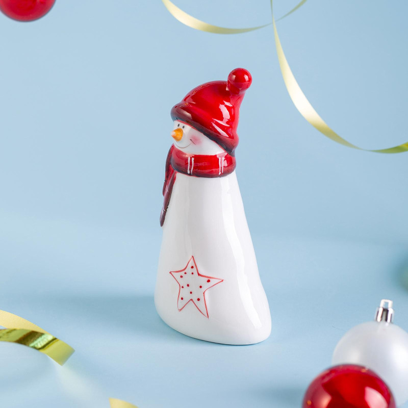 Пусть ваш дом наполнится теплом и радостью — даже когда за окном метель! Этот очаровательный снеговик из белоснежного фарфора в яркой красной шапке и шарфе — настоящий символ Рождества и детской радости. Его доброе лицо, румяные щёчки и золотой носик словно приглашают вас в мир сказки, где всегда праздник, подарки и уют.