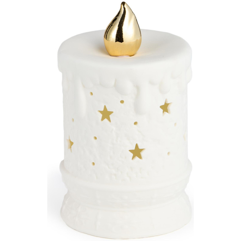 Пусть ваш дом наполнится тёплым, мягким светом — без риска, без дыма, без свечей! Эти изысканные статуэтки в форме свечей, выполненные из белоснежного фарфора с золотыми деталями, — не просто украшения, а настоящие источники уюта и волшебства. Внутри каждой — нежная LED-подсветка, имитирующая мерцающее пламя, создающая атмосферу праздника, романтики или медитации.