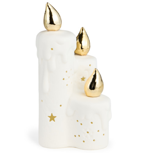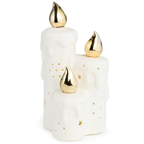 Пусть ваш дом наполнится тёплым, мягким светом — без риска, без дыма, без свечей! Эти изысканные статуэтки в форме свечей, выполненные из белоснежного фарфора с золотыми деталями, — не просто украшения, а настоящие источники уюта и волшебства. Внутри каждой — нежная LED-подсветка, имитирующая мерцающее пламя, создающая атмосферу праздника, романтики или медитации.