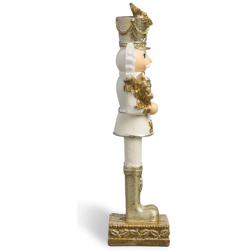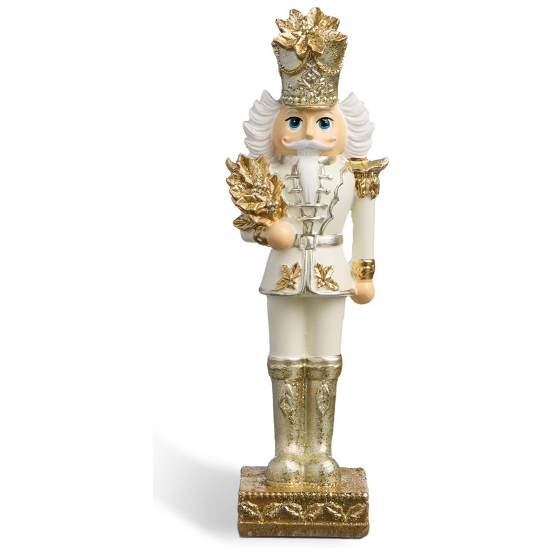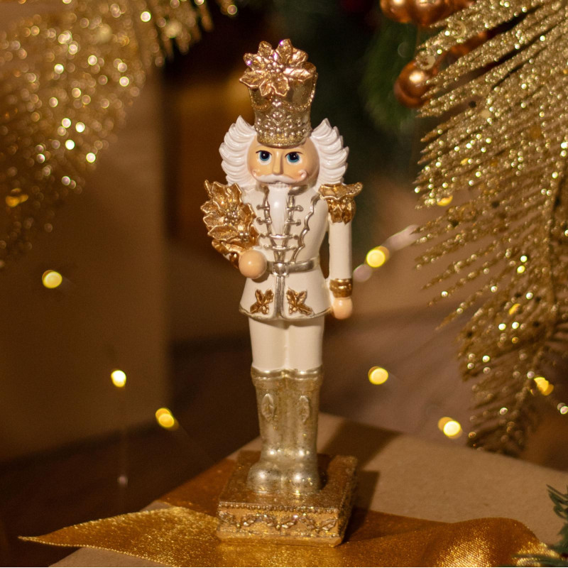 Благородный, в белом мундире с золотыми узорами, в короне и с лавровым венком — он словно сошёл со сцены балета Чайковского. Изготовлен из прочного полистоуна: лёгкий, но выразительный, с тонкой фактурой и благородным матовым золотом.