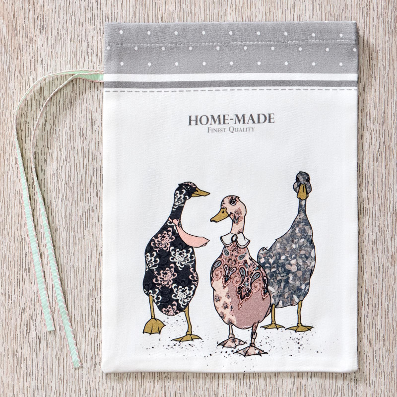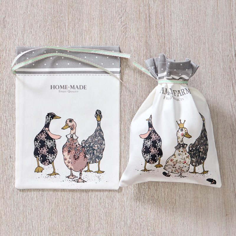 Мешочки для хранения Lefard из 100% хлопка — прочные, гипоаллергенные и безопасные. Дизайн украшен изображением гусей и надписью "Family Farm", придающей изделиям уютный деревенский стиль. Размер 20×29 см позволяет использовать их как подарочную упаковку или мешочки для хранения.