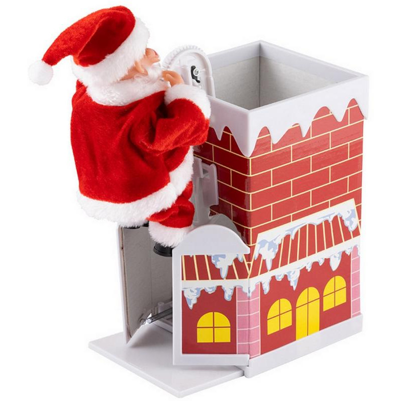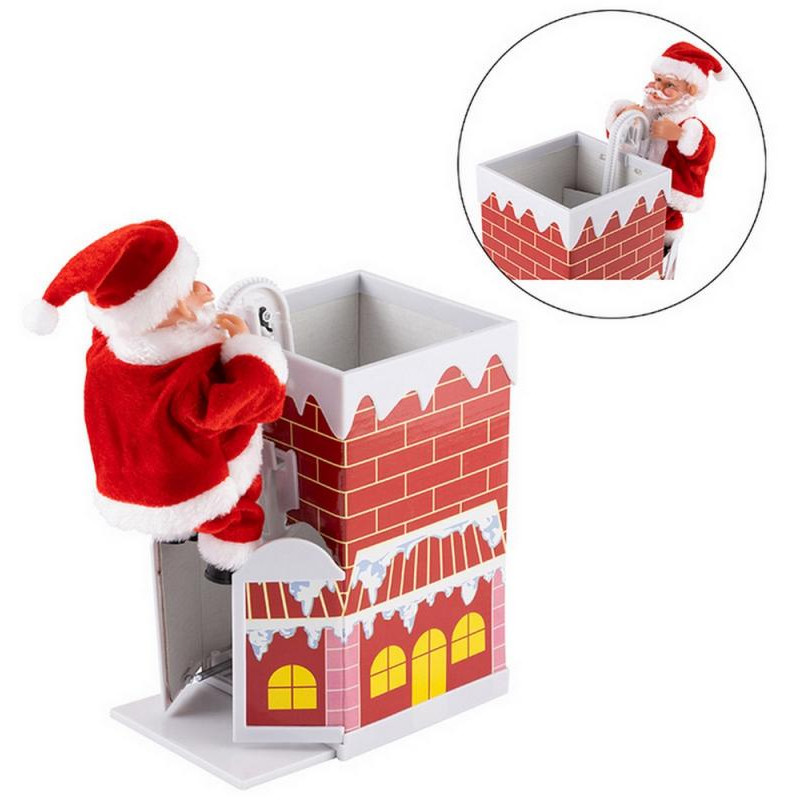12х12х21см, Санта забирается в трубу, без музыки, работает от 3хАА(нет в комплекте)