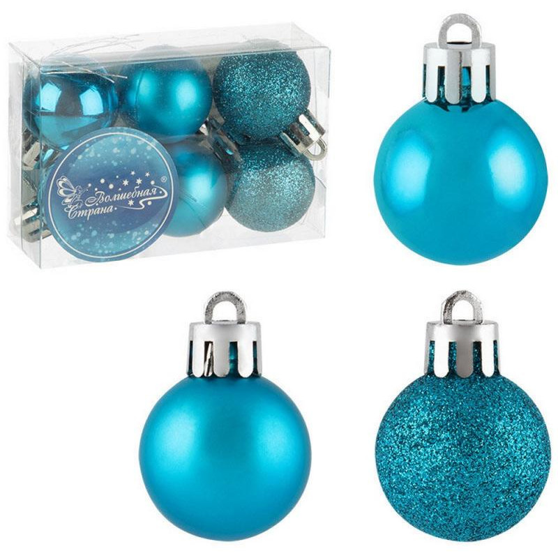 6шт, 3см, пластмасса/полиэстер, 2шт матовые, 2шт глянцевые, 2шт с блестками, цвет: озерно-голубой