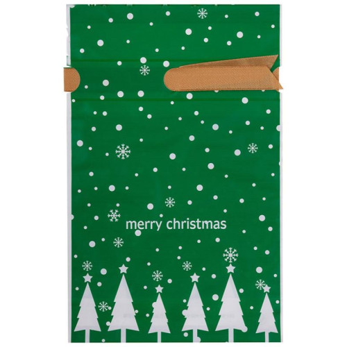109726 Пакет подарочный с затягивающей лентой 'Ёлки' (10шт) зелёный 22.5х34см