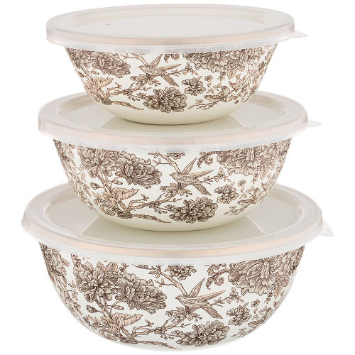 Набор мисок эмалирован. с пластик.крышками, серия ROYAL GARDEN 6пр. 14/16/18см, 0, 6/0, 9/1, 3л AGNESS 950-097